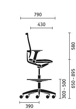 | Sedile | • Sedile anatomico di forma leggermente concava con supporto del bacino e bordo anteriore del sedile arrotondato • Schiumato stampato (poliuretano espanso) • Spessore dell‘imbottitura 40 mm • Larghezza 485 mm, profondità 430 mm • Su richiesta sedile scorrevole con profondità sedile 400 - 460 mm |